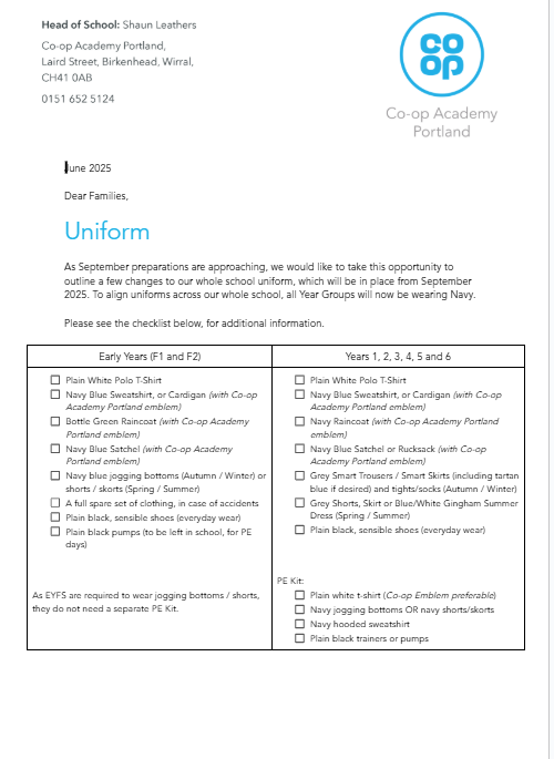 Reminder of our uniform: