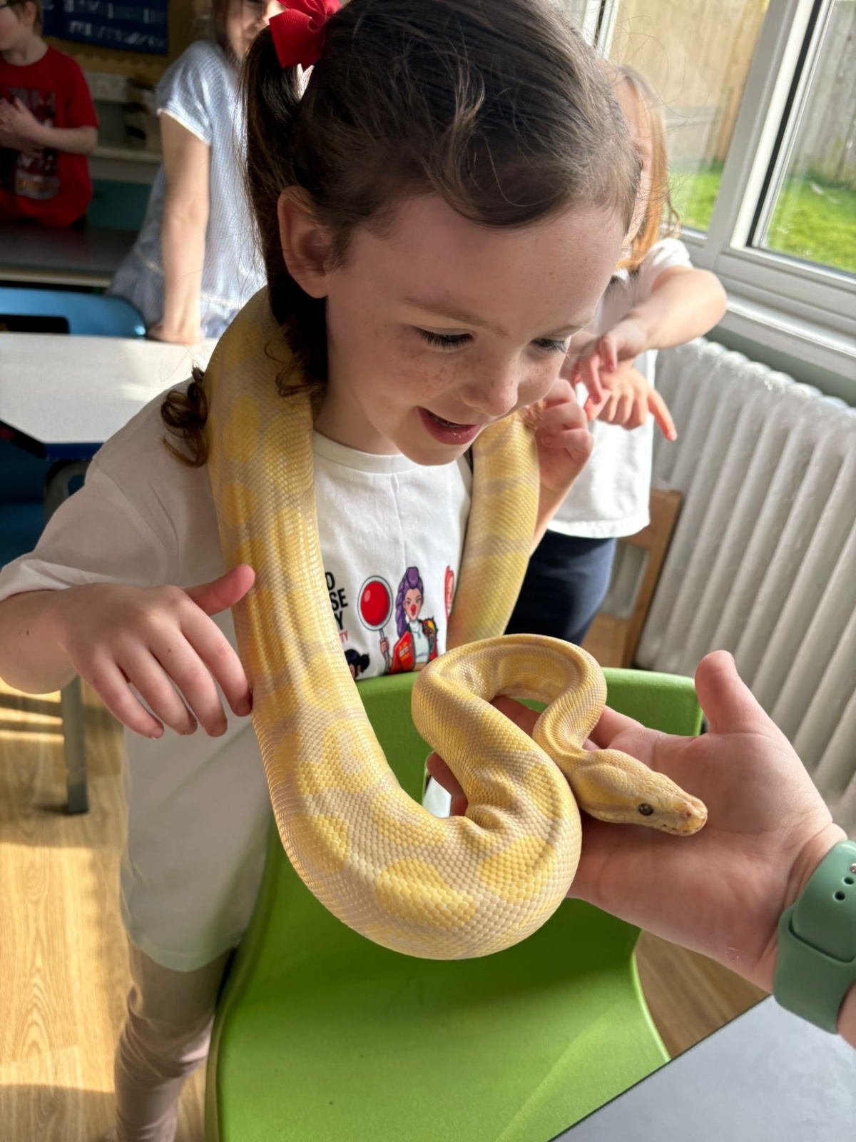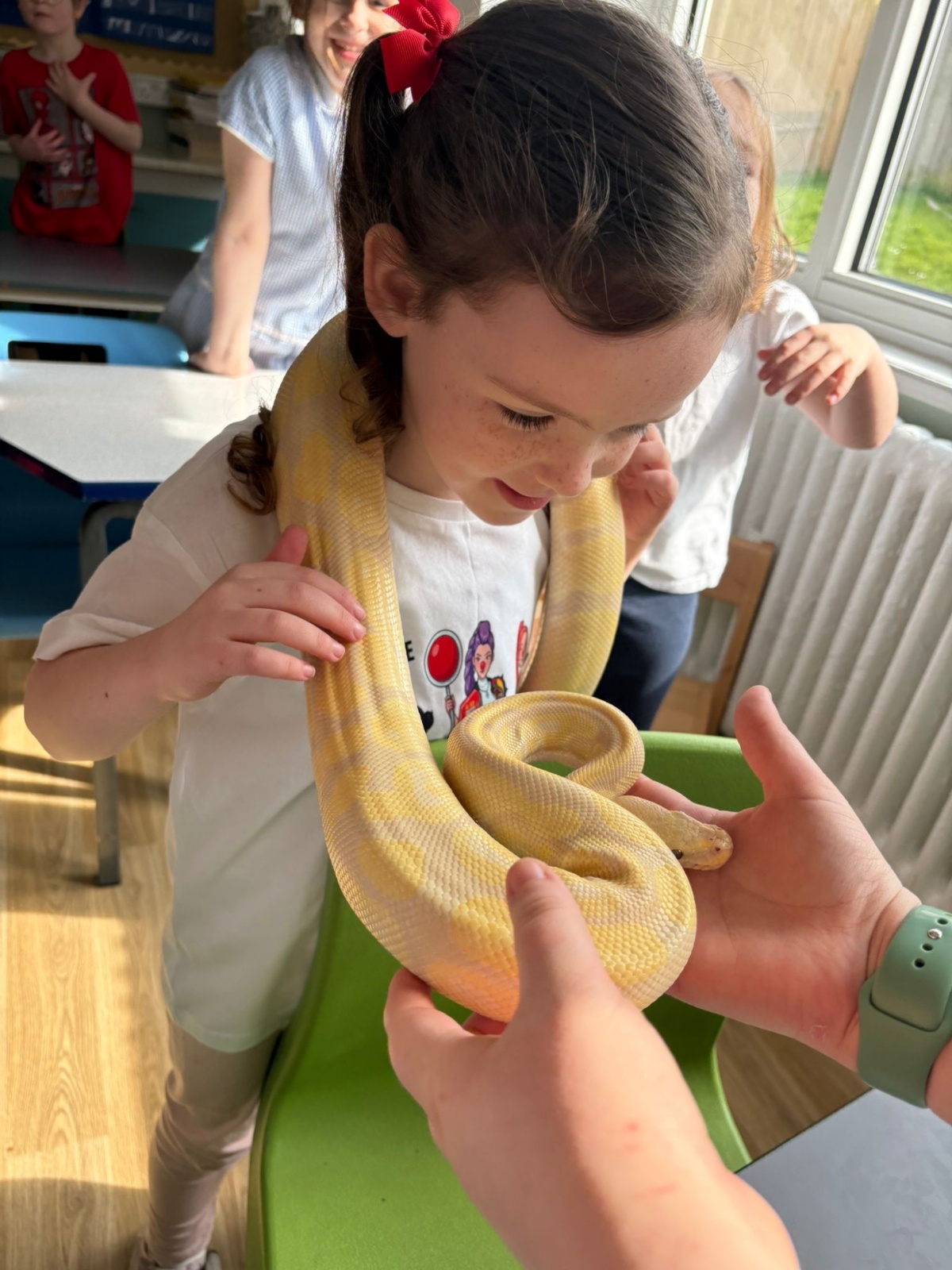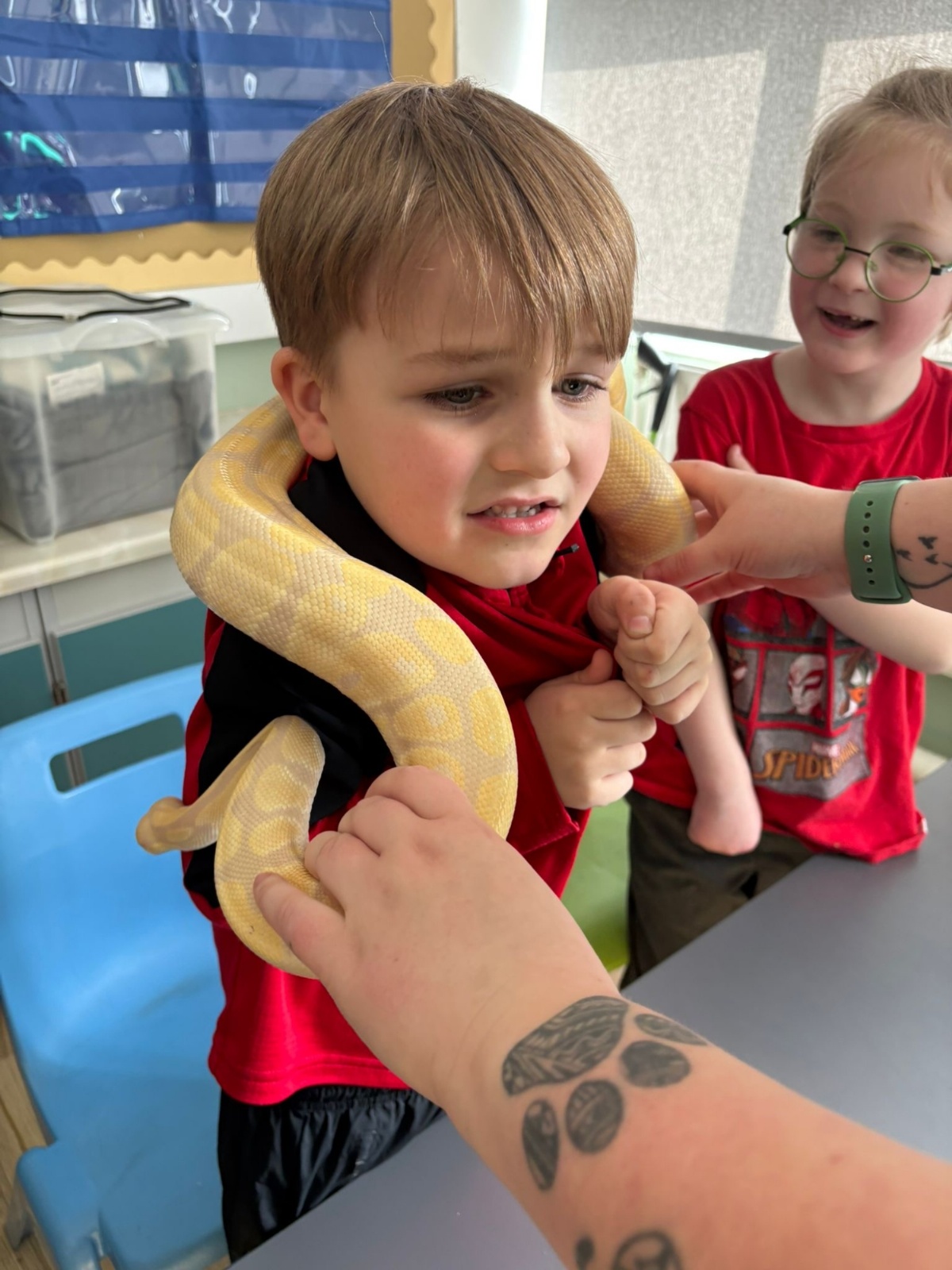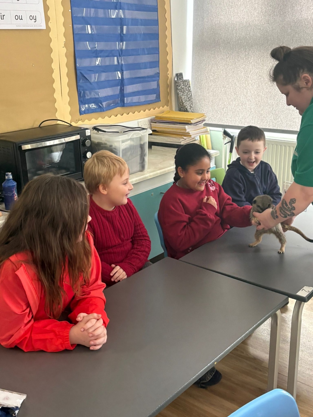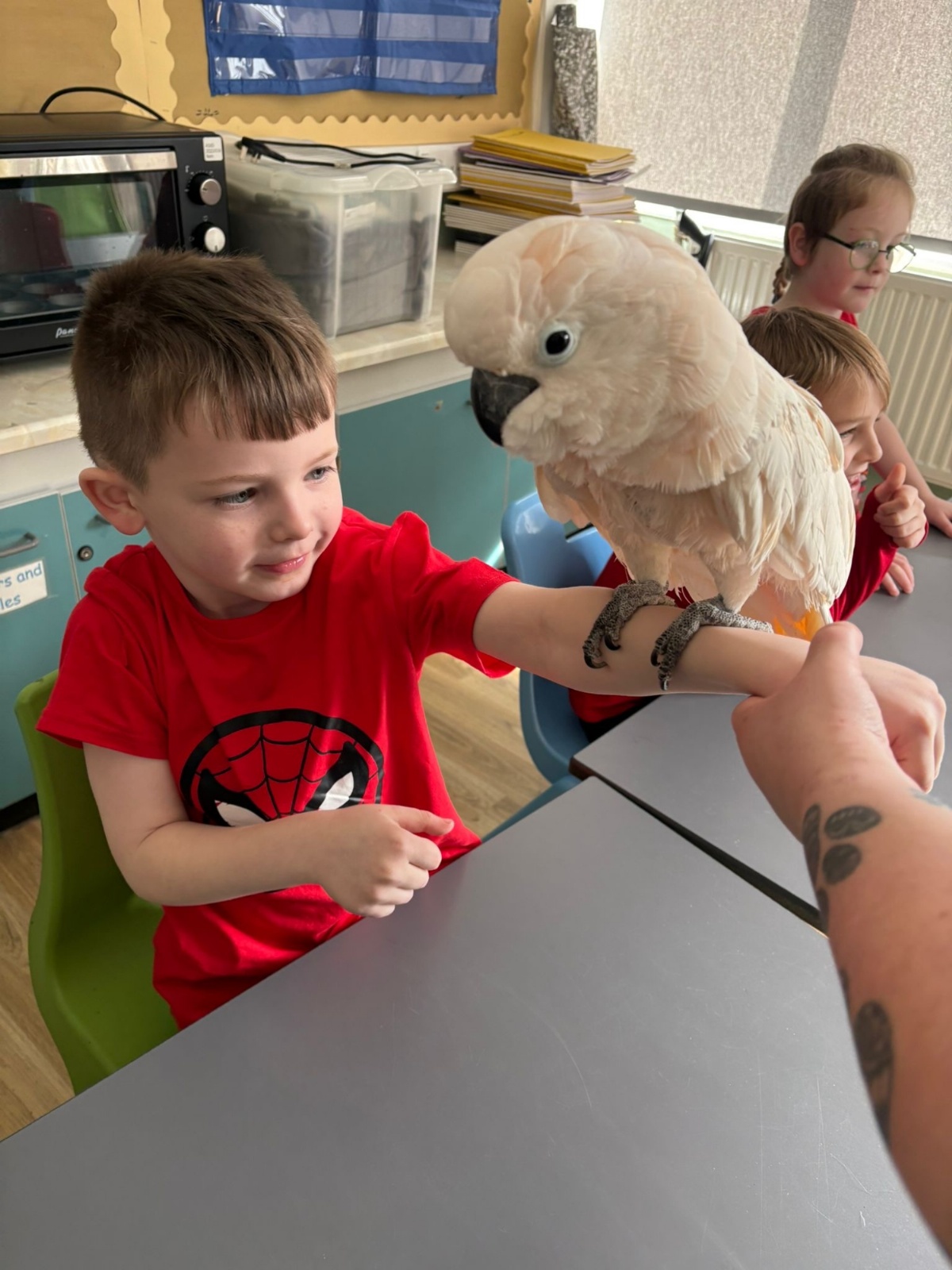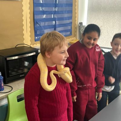 The school hall was absolutely buzzing with excitement today as we welcomed some incredibly special animal guests! From cheeky meerkats standing tall to see what was going on, to adorable, prickly hedgehogs waiting for a gentle stroke, there was a brilliant surprise around every corner. The children were completely mesmerised by the beautifully bright parrots and even got to conquer their fears by meeting a smooth, slithery snake. With expert handlers showing everyone the ropes of safe, gentle handling, it was an unforgettable day filled with wide smiles, lots of giggles, and fantastic hands-on fun for the entire school!